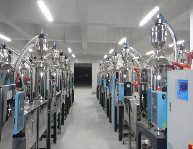 7.中央供料系統(tǒng)采用真空傳送方式,通過集中的管路系統(tǒng)將塑料原料從儲料罐輸送到中央除濕干燥系統(tǒng),然后將干燥后的原料輸送到每臺注塑機(jī)中。